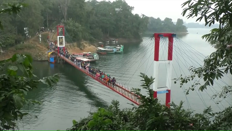 সিম্বল অব রাঙামাটি হিসেবে পরিচিত পর্যটনের ঝুলন্ত সেতু। শুক্রবার (১৪ জানুয়ারি) ছুটির দিনে দলে দলে এসেছে পর্যটক। মনের আনন্দে ঘুরে বেড়াচ্ছেন এদিক সেদিক।